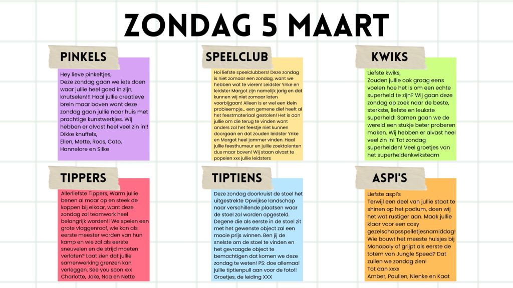 Wat jullie deze week juist gaan doen, ontdekken jullie in de nieuwsbrief!