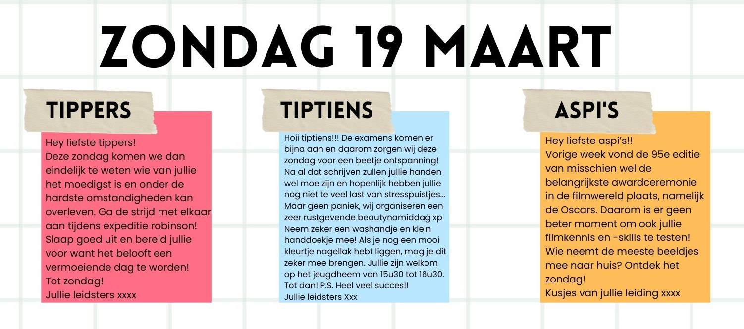 Na ons geweldige kleinkamp van vorige week met de jongste bannen, en een schitterende zondag met de oudste bannen, zijn we weer helemaal klaar voor een nieuwe zondag!